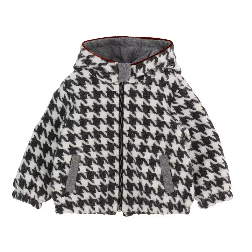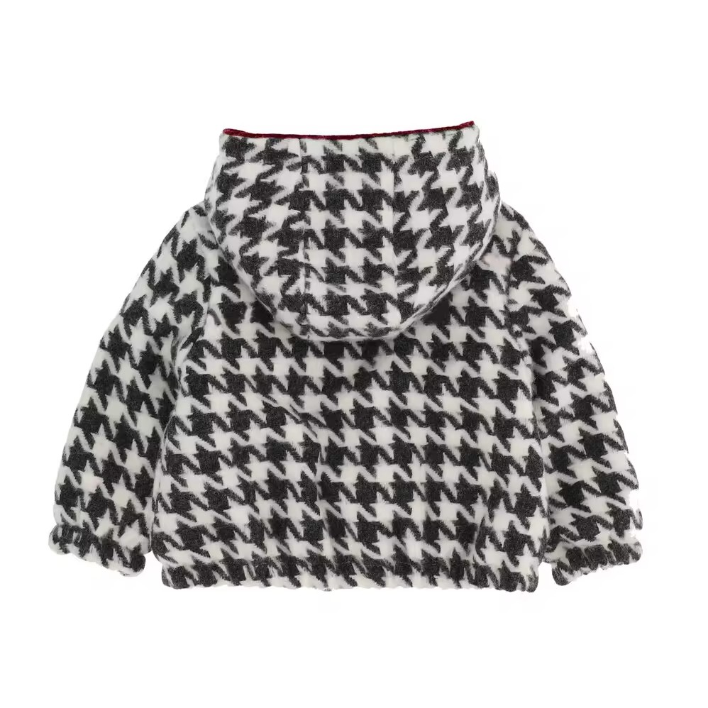 Custom Houndstooth Print Casual Style Kids Girls Jackets Coats Front Zipper Winter Jacket Kids With Hoodies