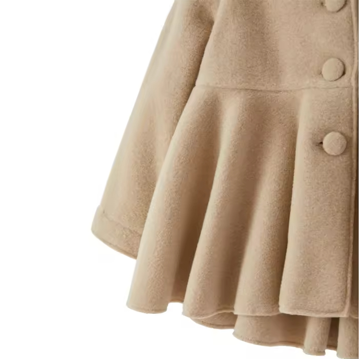Hot Sale Children Winter Ruffles Bottom Woolen Coat Girls Warm Clothing Kids Fashion Fall Winter Wool Coats
