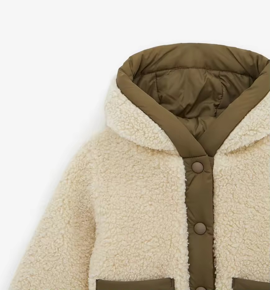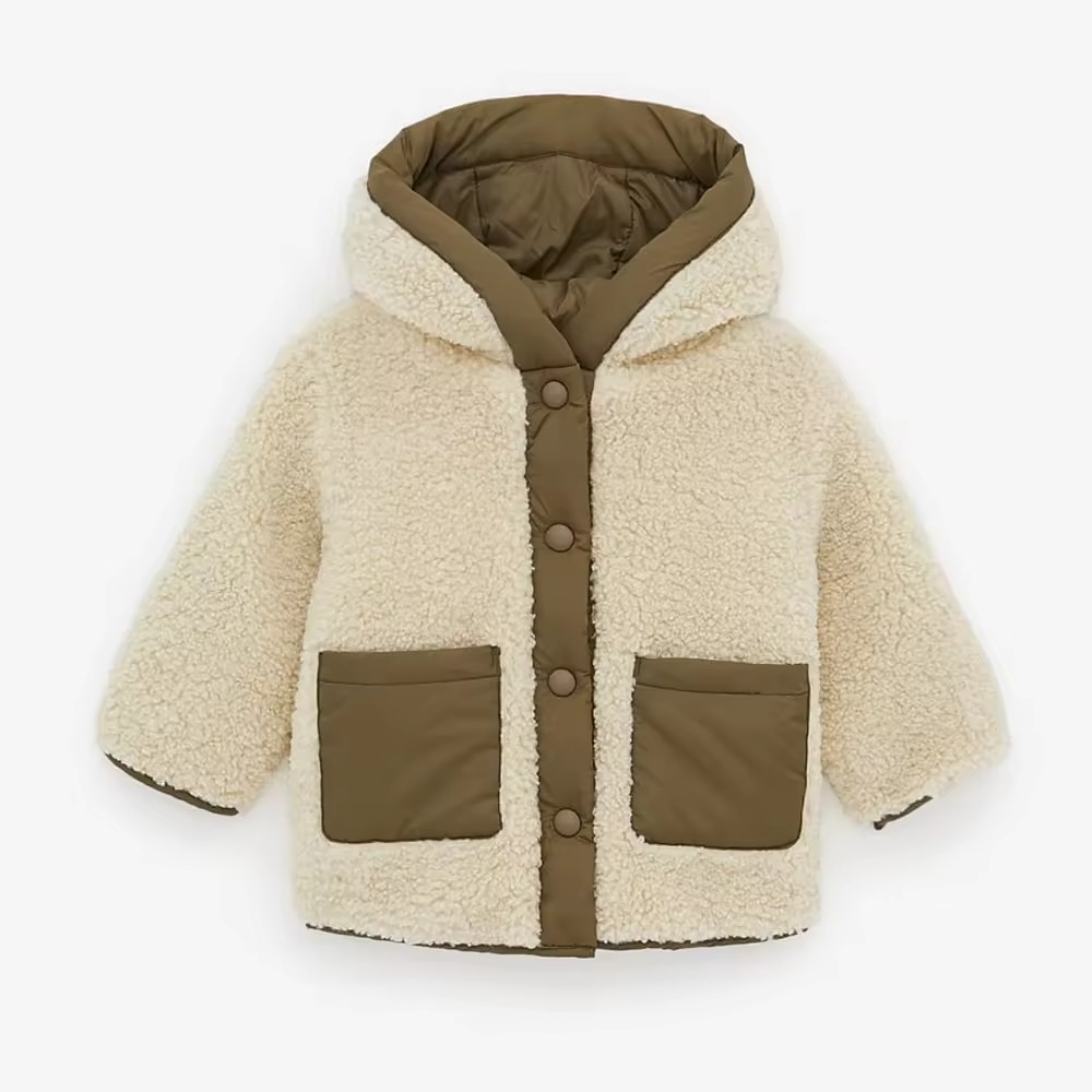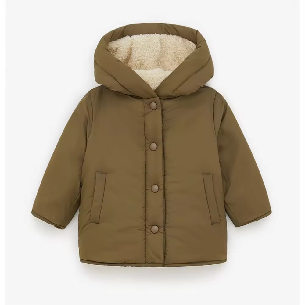 High Quality Reversible Fur Hooded Coat for Baby Boys Solid Pattern Winter Coat