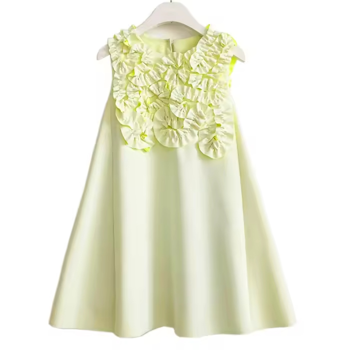 Casual Sleeveless Princess Summer Dress for 6-Year-Old Girls Cotton With Ruffles Sustainable Children's Solid Dress