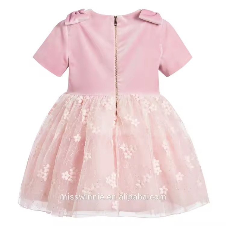 Autumn Season Korean Style Girls' Dress Casual Short Sleeve Chiffon Fabric Knee-Length for Children