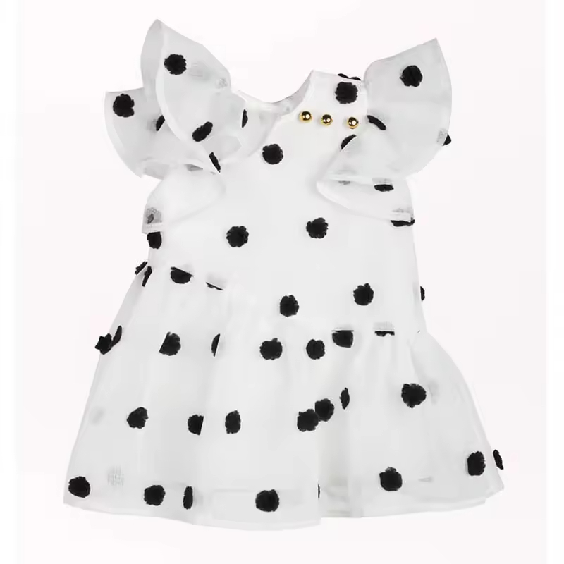 1.Girls Dress in White/black color, quality cotton fabric and a vintage style.
