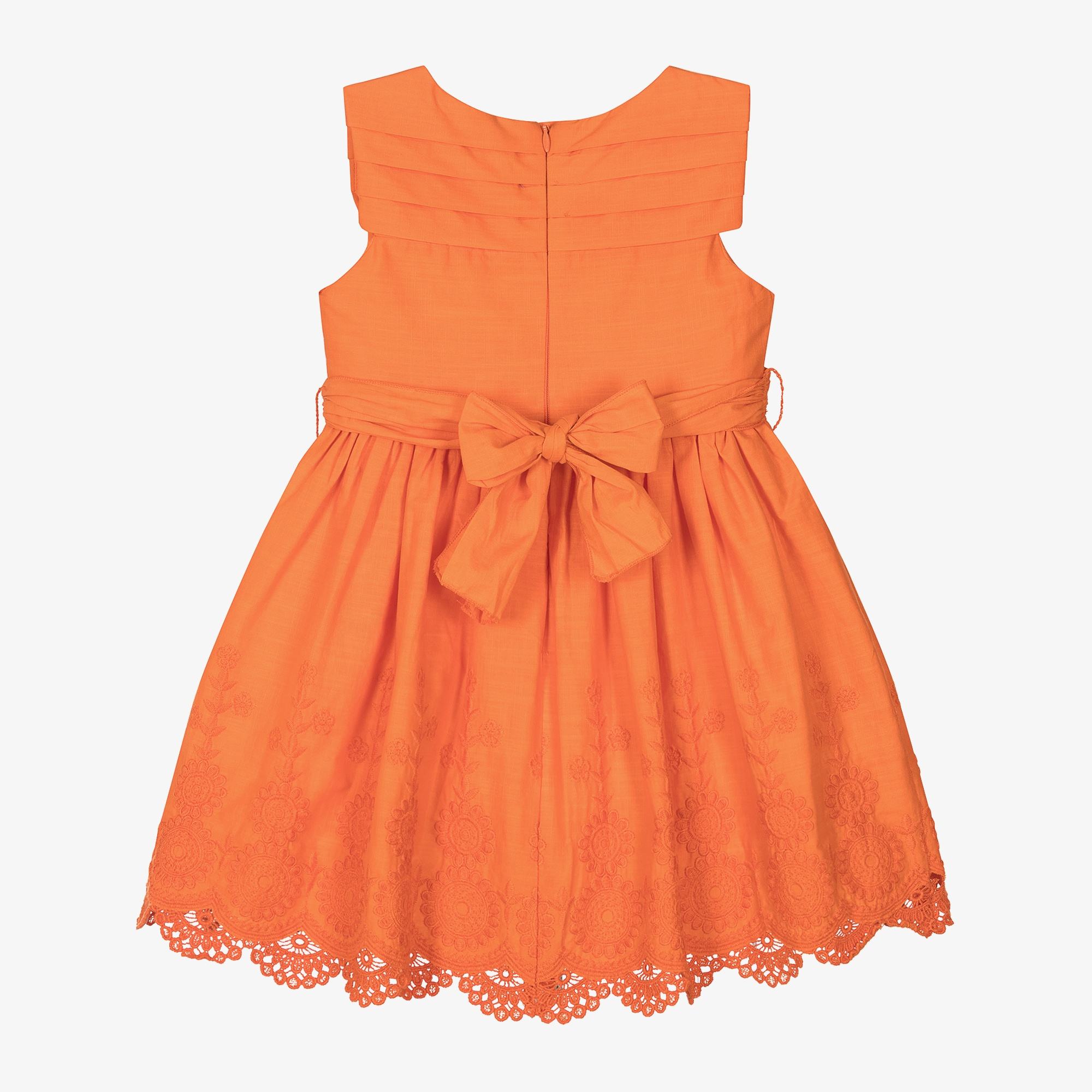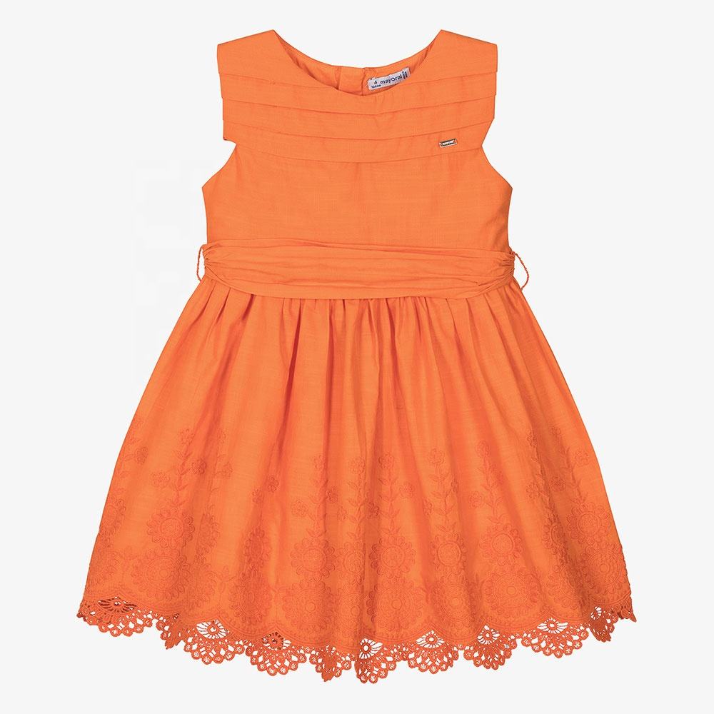 Guangzhou Custom Orange Cotton and Linen Children Girls Dress With Flower Lace Edge Wholesale Toddler Baby Girl Skirt Factory