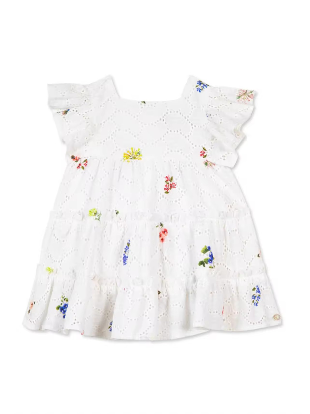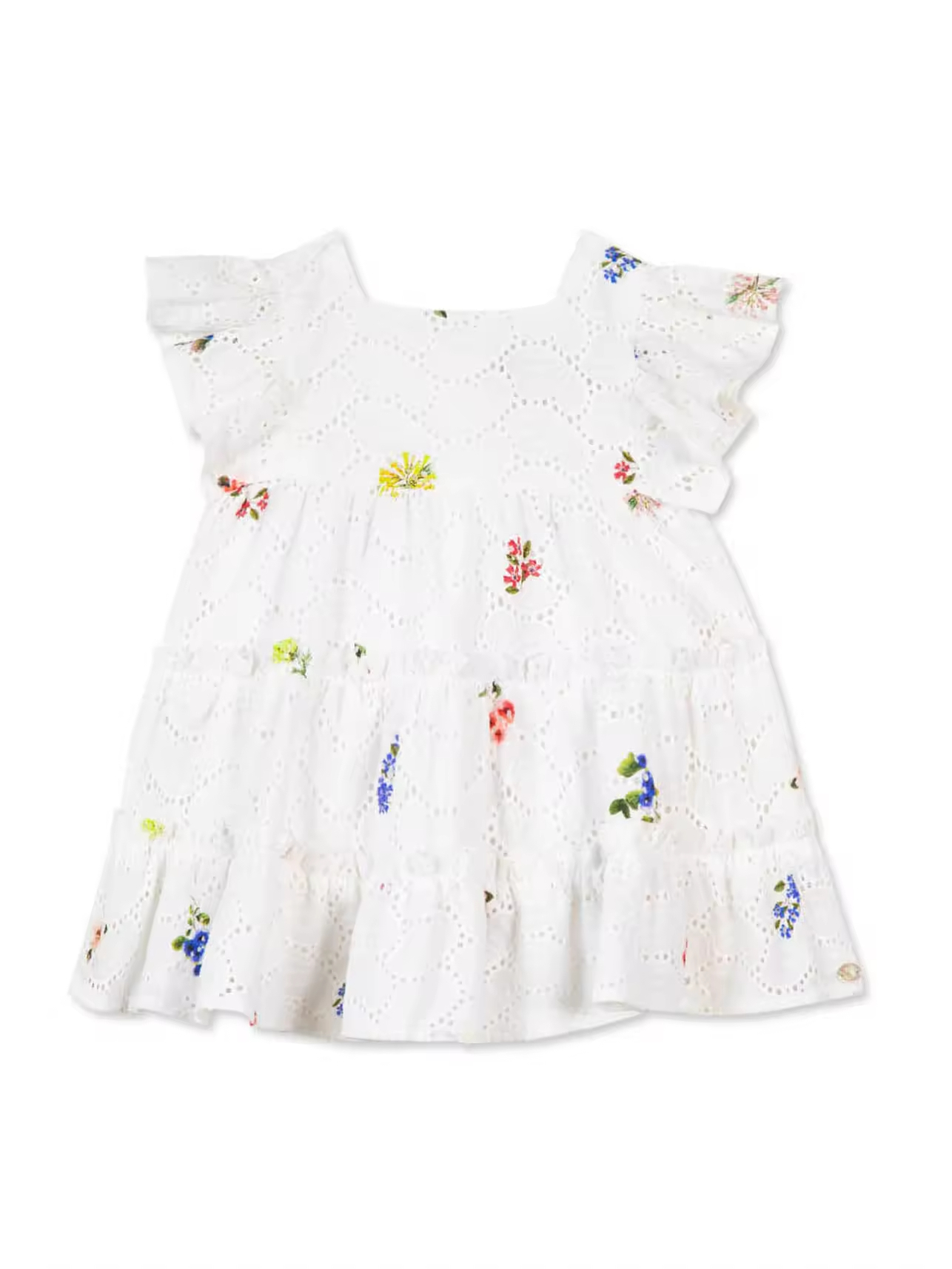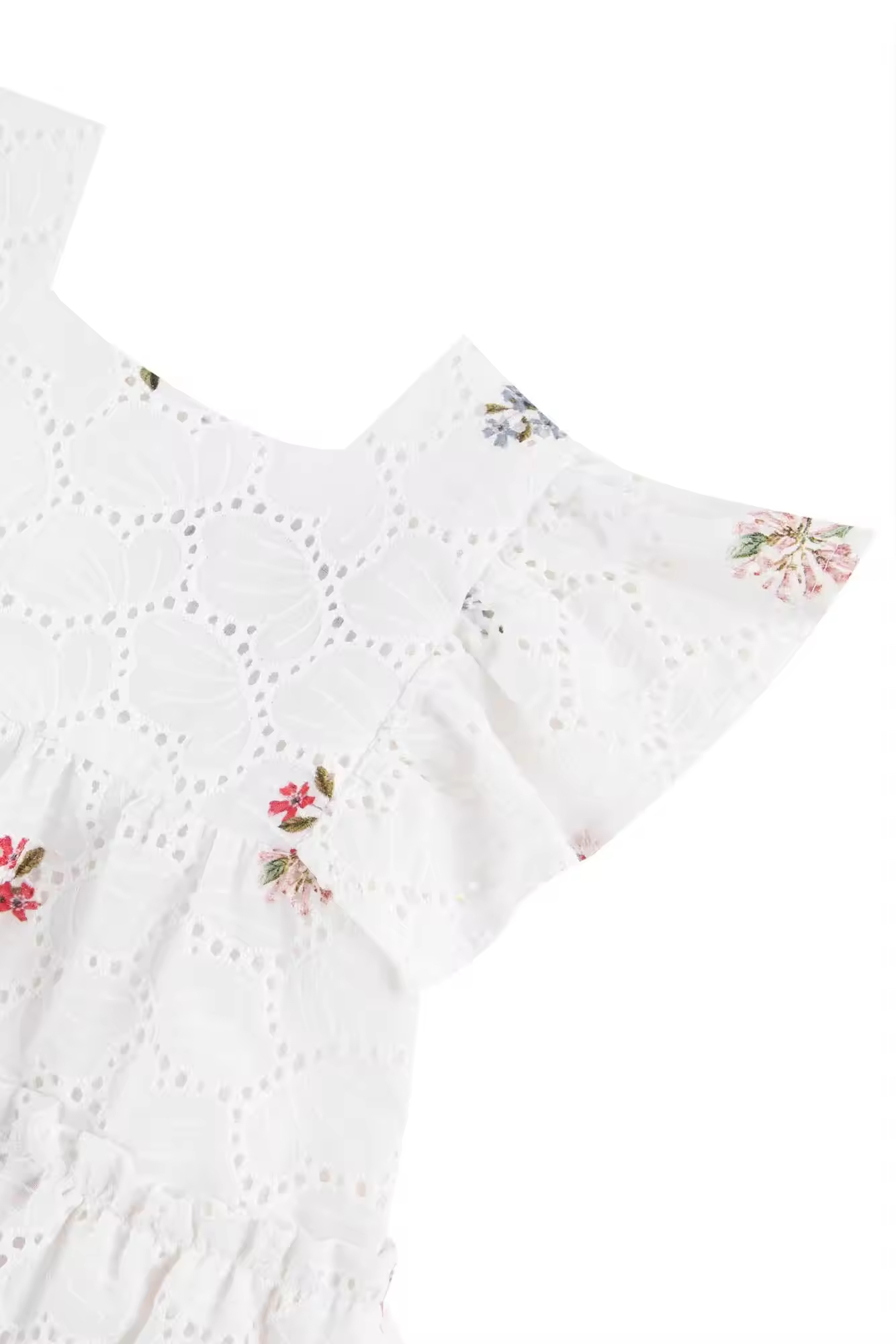 2025 Cute Style Sweet Summer European Dresses for Kids Eyelet With Print Toddler Dress for Girls 1 to 5 Age