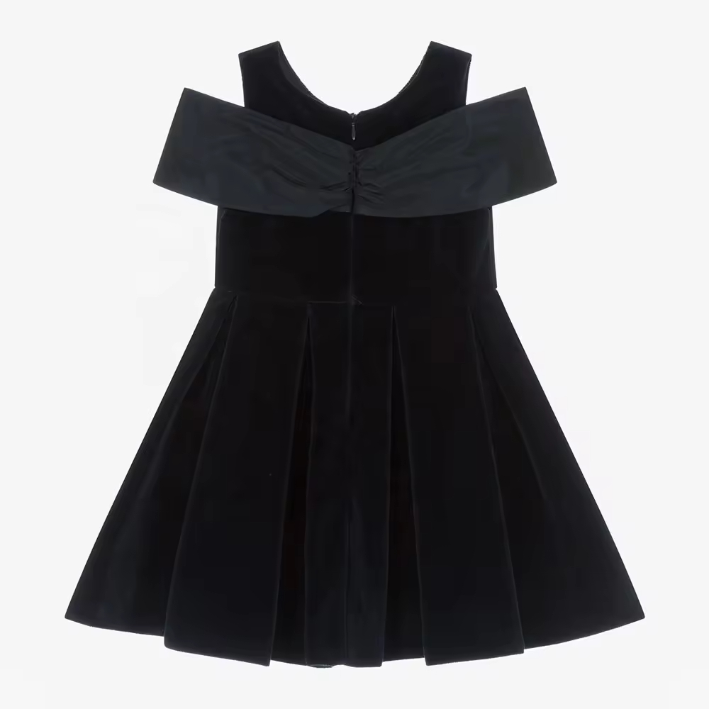 Custom 2024 New Arrival Elegant Black French Children Girls Dresses With Bow Fancy High Quality Boutique Banquet Baby Girl Dress