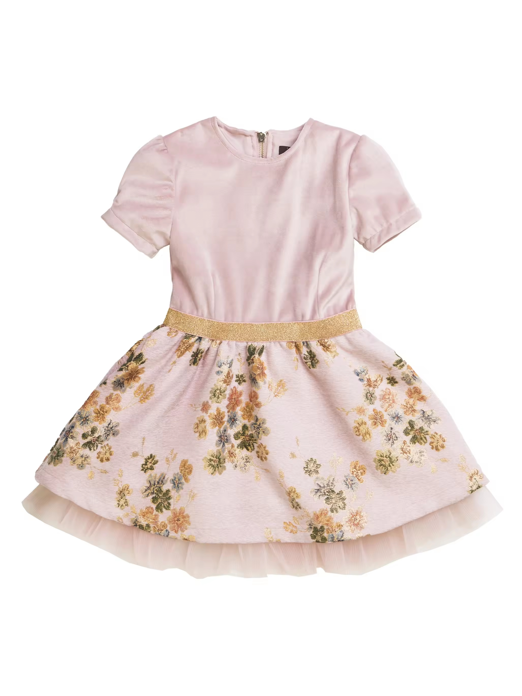 2024 Custom High Quality pink Velvet Elegant Children Girls Dresses With Flower for Party Western Style Kids Clothing Factory