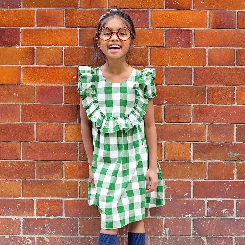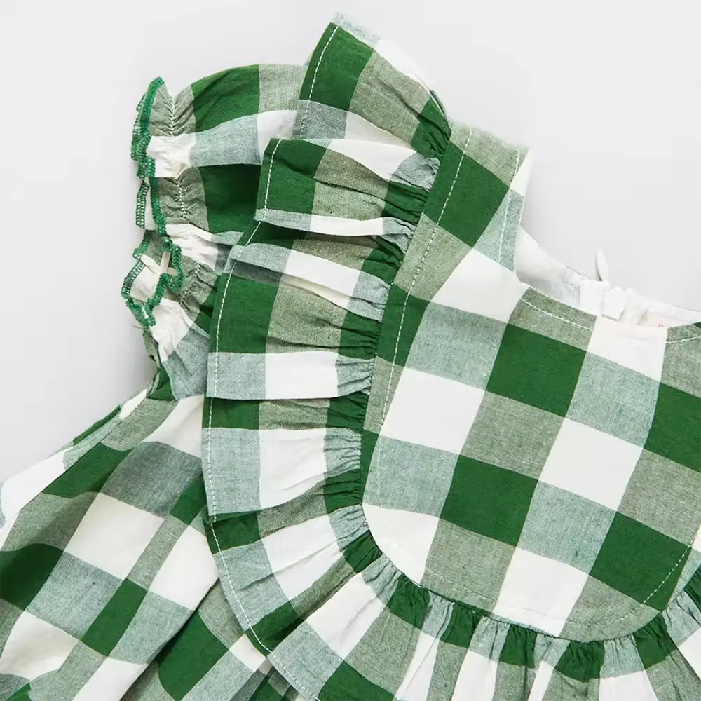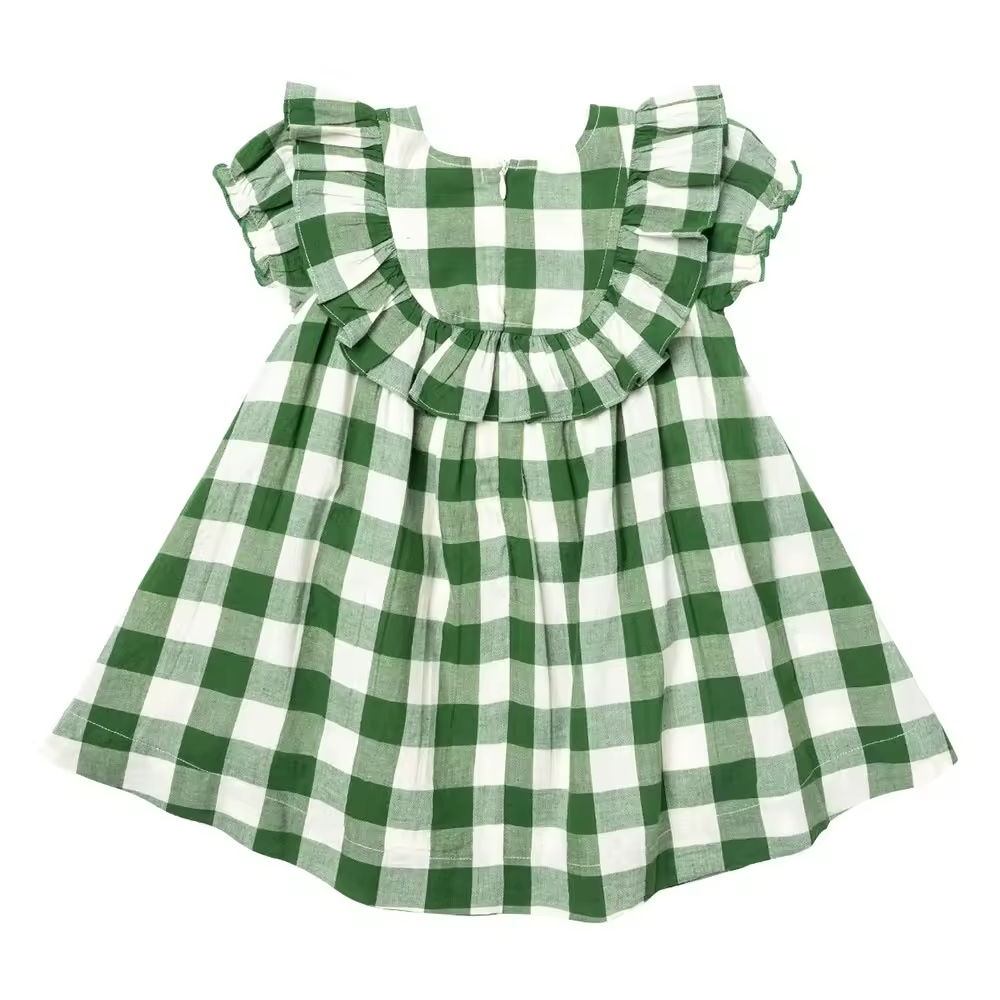 Custom Green Kids Frock Plaid Girls Dresses for Children Baby Girl Dress in Summer