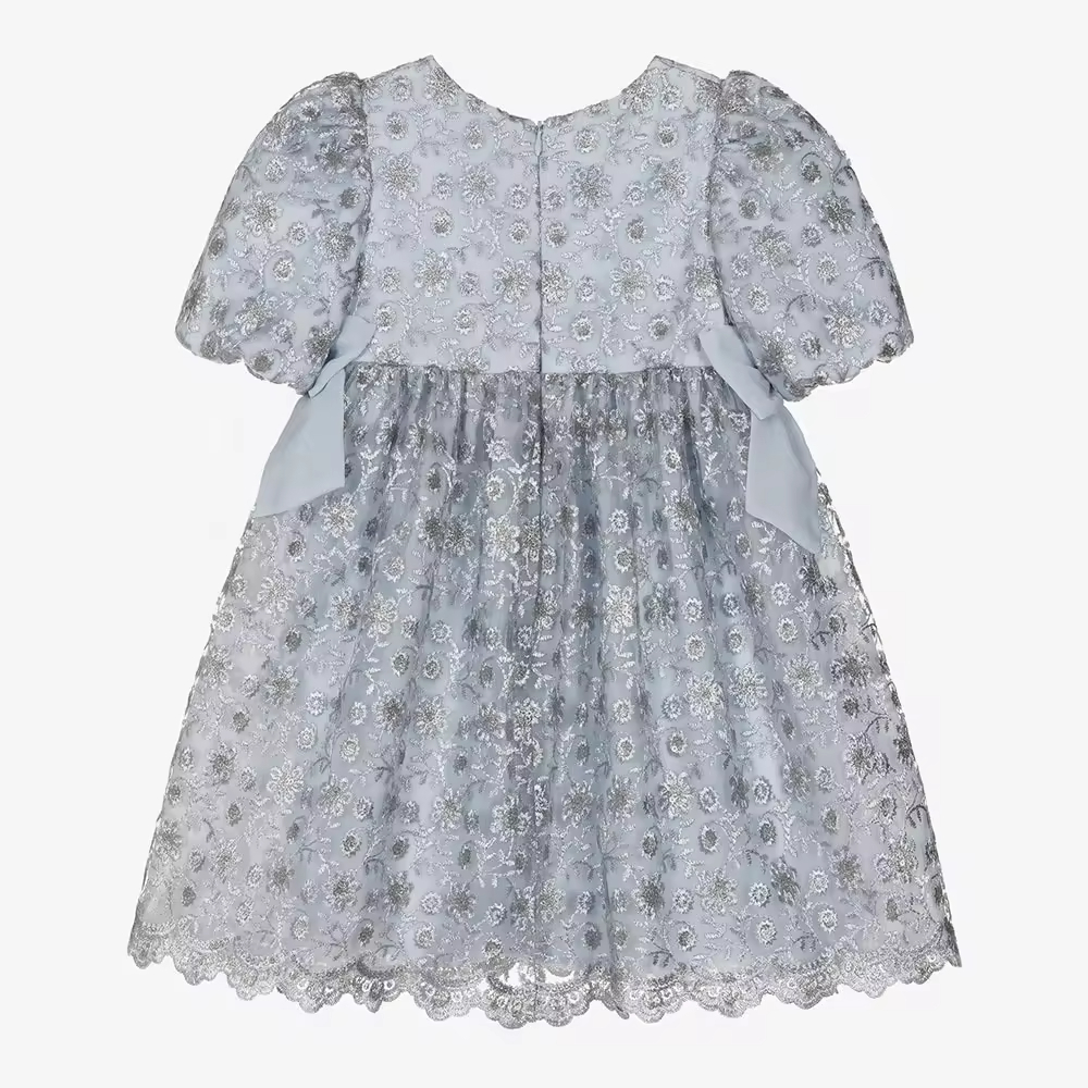 Custom Blue Children Girl Dress With Hand Embroidery Flower for Wedding Birthday Wholesale High Quality Kids Dresses Factory
