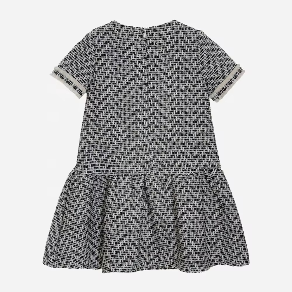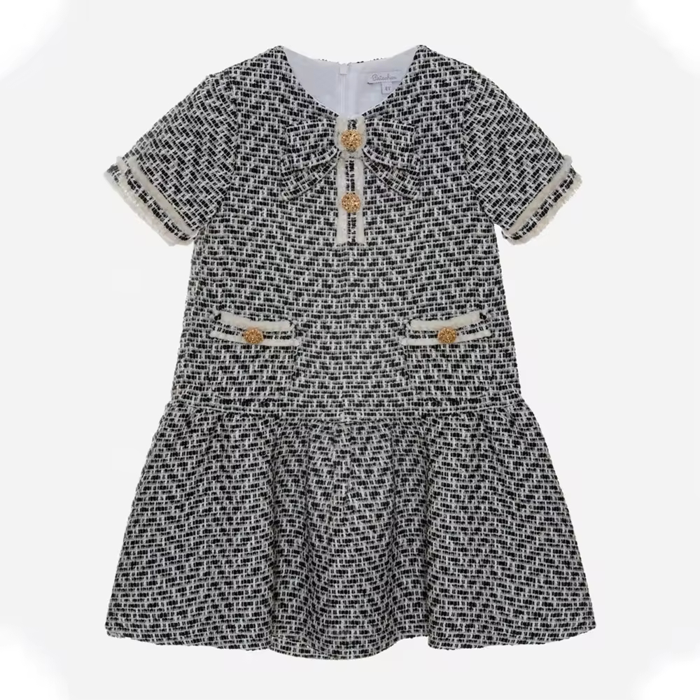 1.Girls Dress in White/black color, quality cotton fabric and a vintage style.
