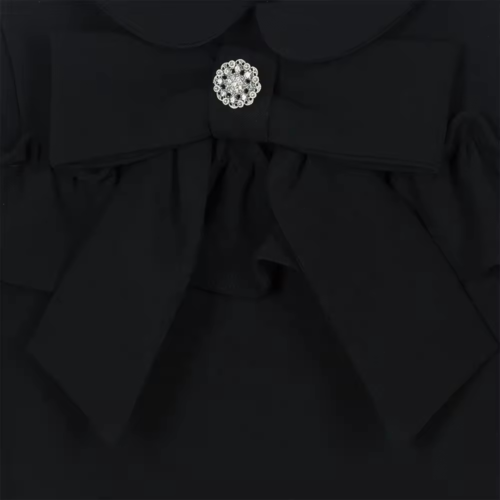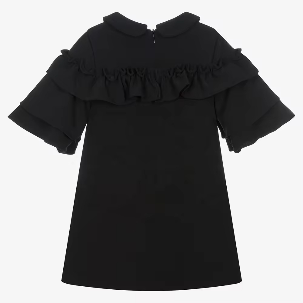 Custom Fashion High Quality Black Children Girl Dress With batwing Short Sleeves in Summer Oem Odm Kids Clothing Factory
