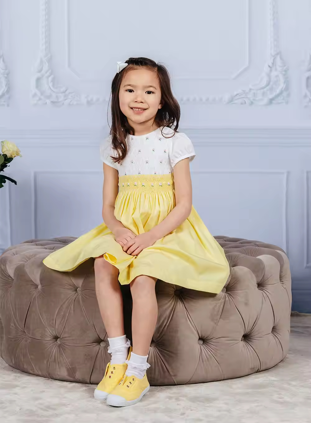 1.Girls Dress in White/black color, quality cotton fabric and a vintage style.