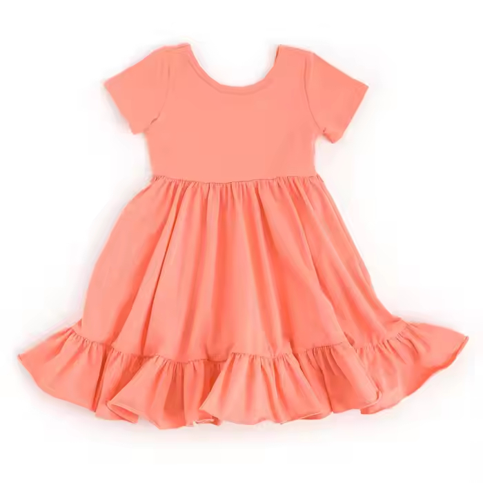 Custom Bamboo or Cotton Spandex Twirl Dress Kids Girls Dresses 2-12 Children Clothing Basic Style Baby Girl Dress Supplier