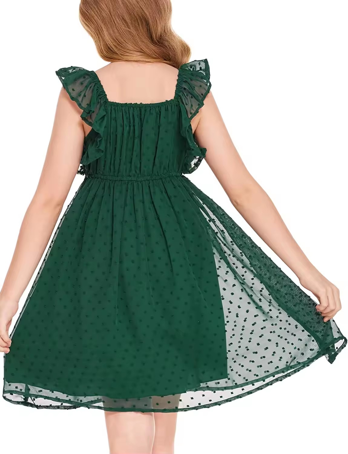 Hot Sell Kids Clothes Sleeveless Green Ruffle Summer Dresses for Girls