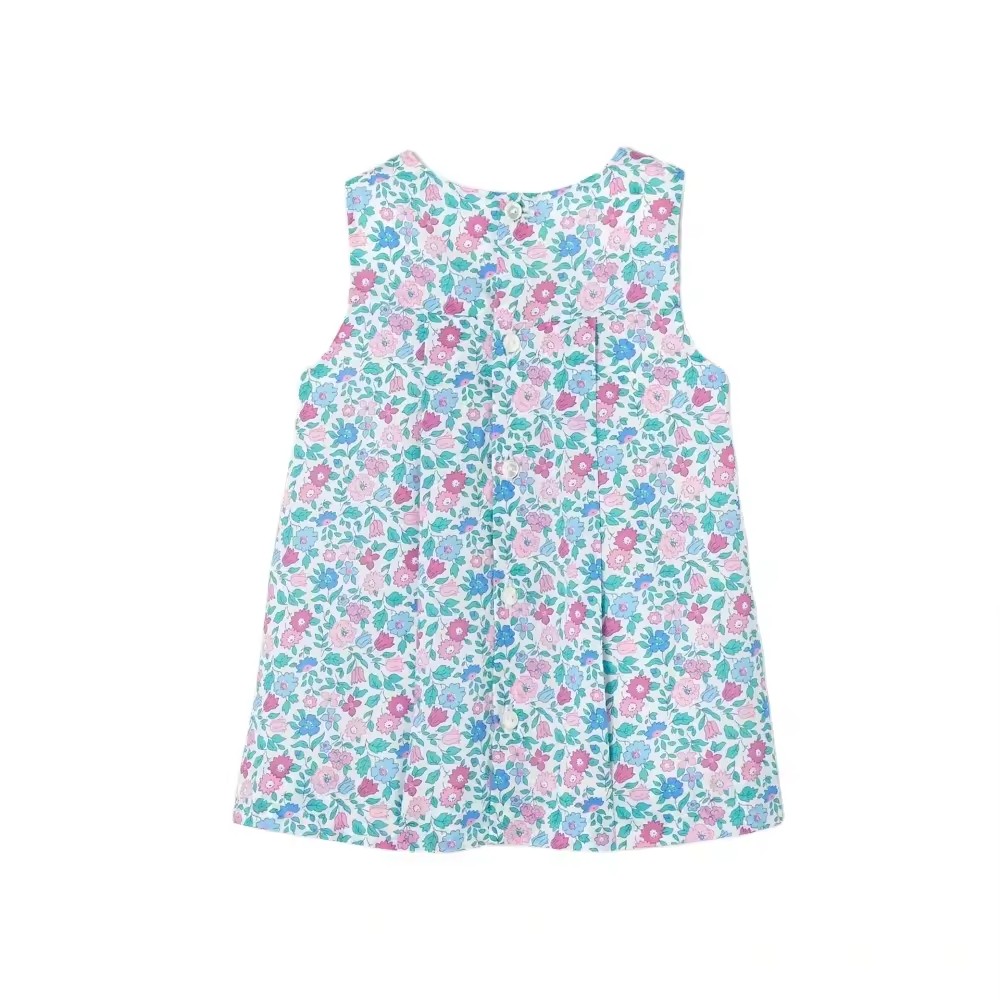 OEM & ODM Custom Floral Print Sleeveless Dress for Kids Toddler Baby Girls Woven Fabric with Button Decoration for Children