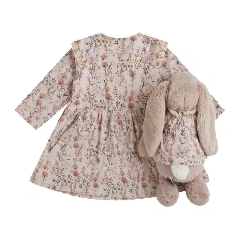 Customized Sizing Lovely Design Cotton Woven Floral Bow Casual Spring Doll Baby Matching Dresses for Toddler GirlsSpecfication