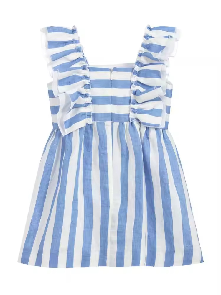 Custom Fashion 3 12 Years Children's Summer Clothes Girls Sleeveless Seersucker Striped Embroidery Dress Girls Dresses