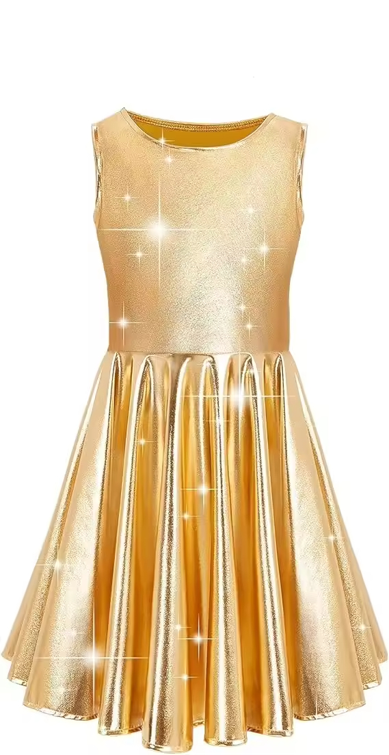 Gaoteng Custom Shiny Metallic Girls Dress Flared Pleated Sparkle Dress for Children Made-to-Order