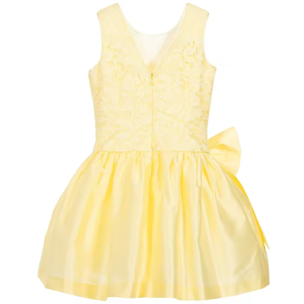 Young Girl's Formal Short Sleeve Dress ODM Guangzhou Female Dress With Print Pattern and Bow Decoration for Babies X Years+