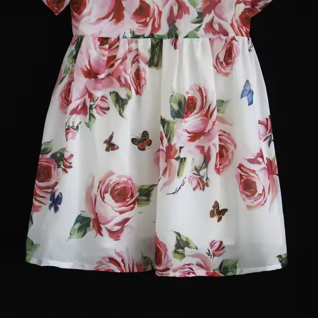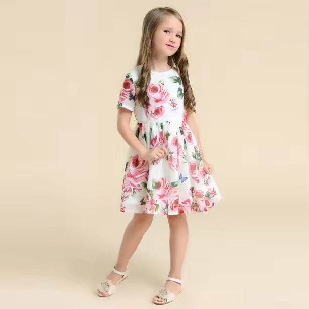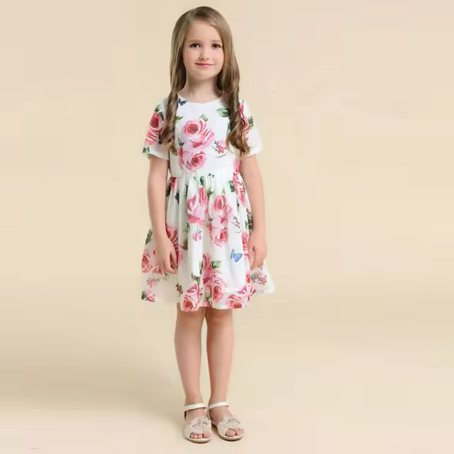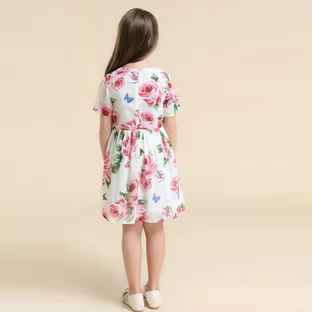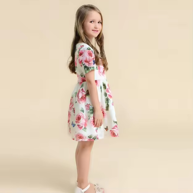 Custom Girls Floral Printed Knee-Length Dress for Kids Summer Party Outfit for Teenage Girls Age Group Children Summer Party