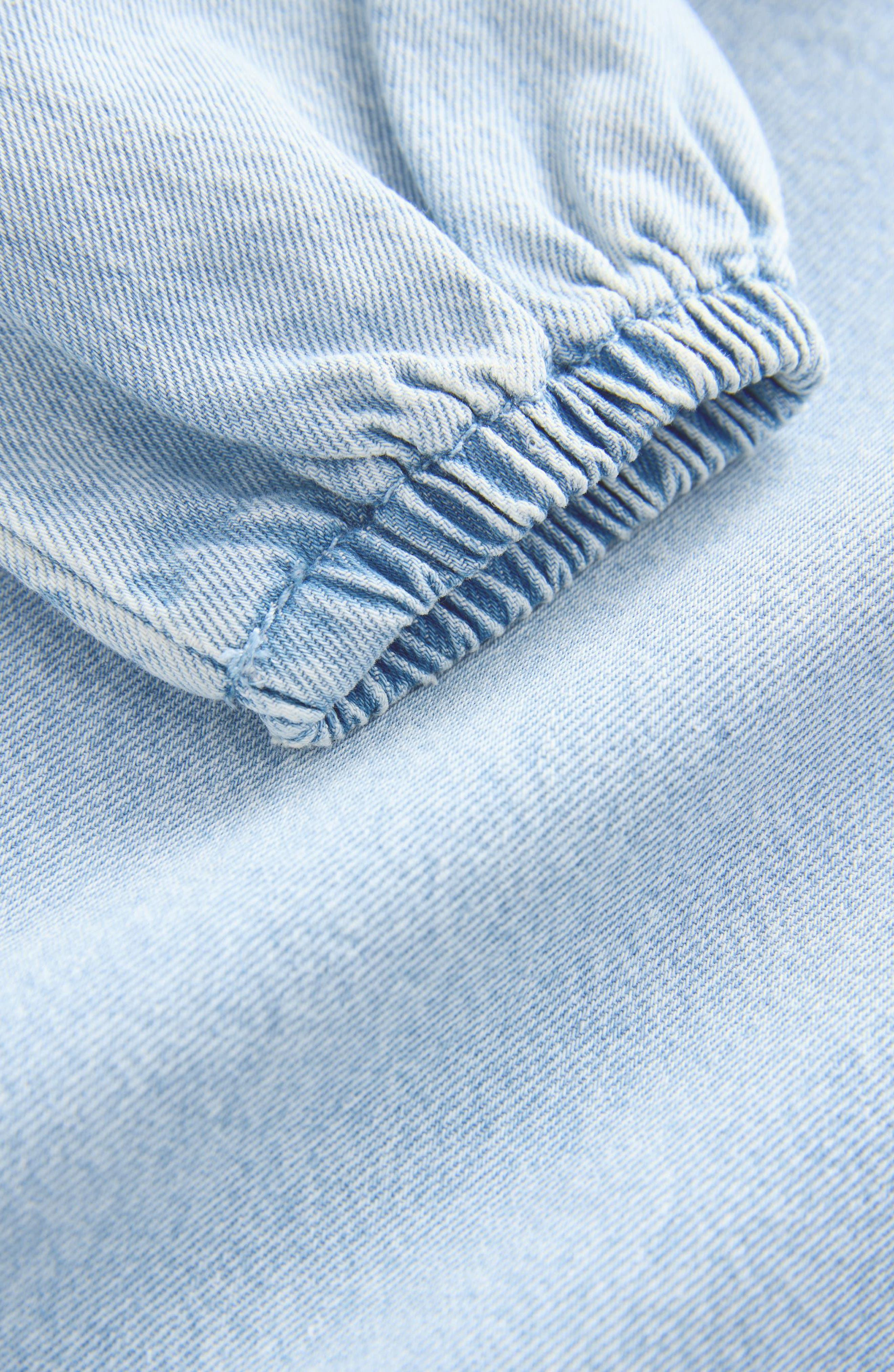 OEM and ODM Customized Kids Embroidered Peter Pan Collar Denim Dress Long Puff Sleeves for Girls Summer Outfit