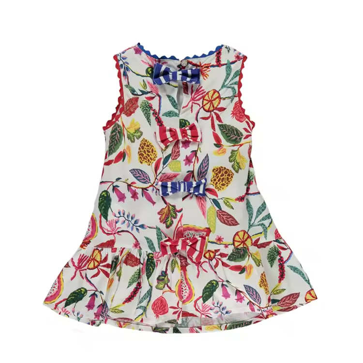 European Style Children Frocks Designs Beautiful Kids Dress Summer Vintage Cotton Sleeveless Flower Girls' Dresses With Bow