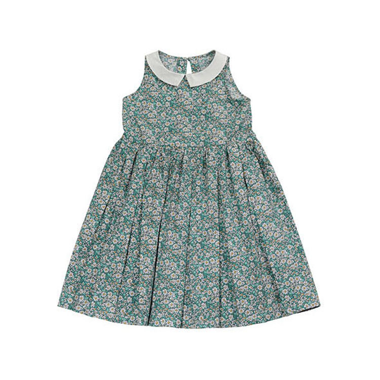 2025 Summer Vintage Casual Crew Neck Sleeveless Knee-Length Floral 100% Cotton A-Line Breathable Dress for Girls