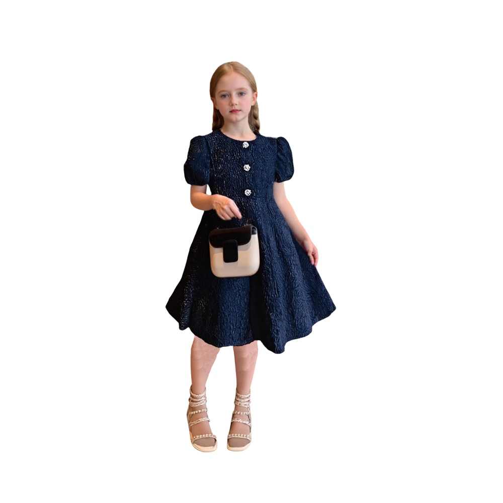 1.Girls Dress in White/black color, quality cotton fabric and a vintage style.