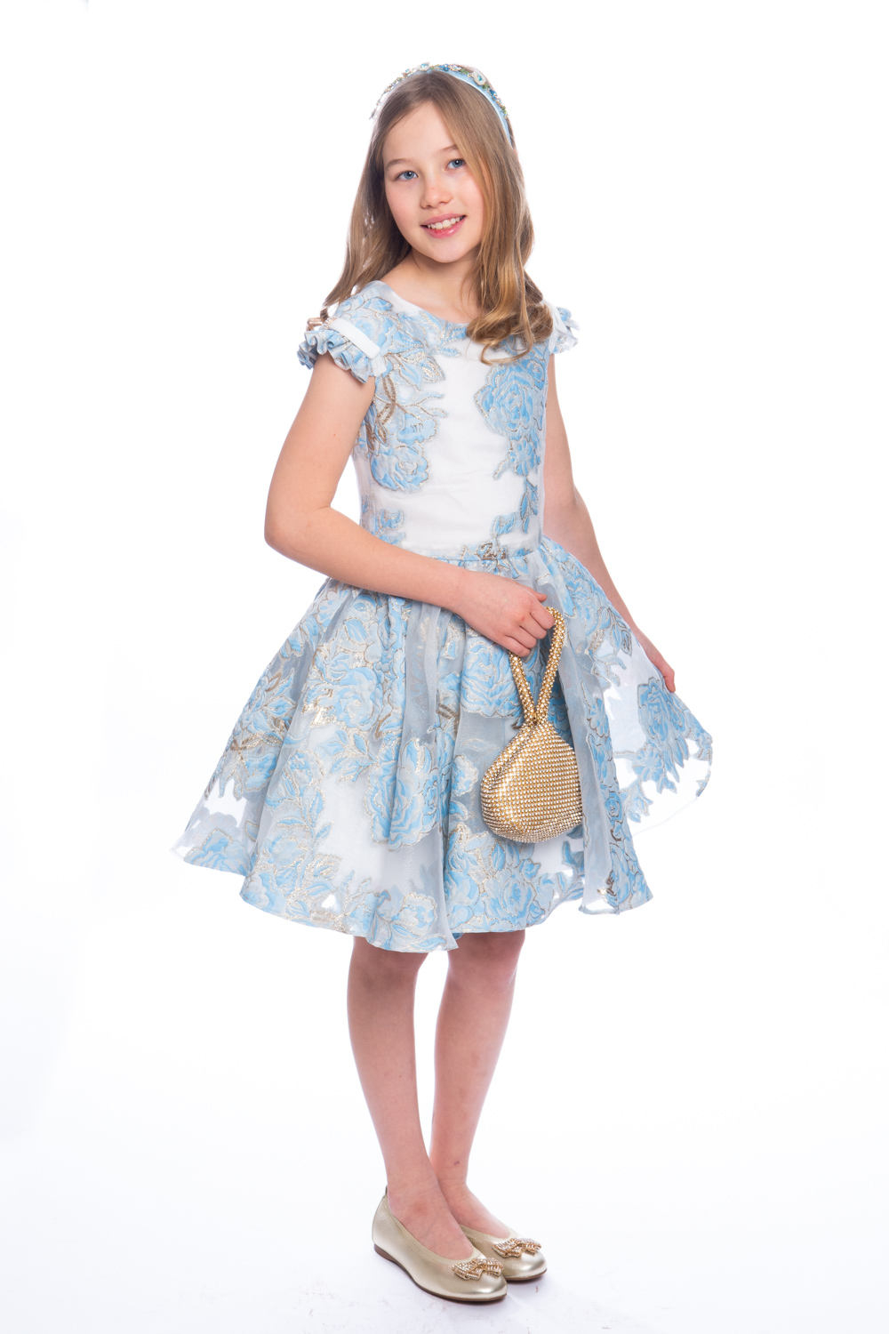 Girls Stylish Dress Jacquard Pleated Fluffy Cuff With Belt OEM Production by Gaoteng