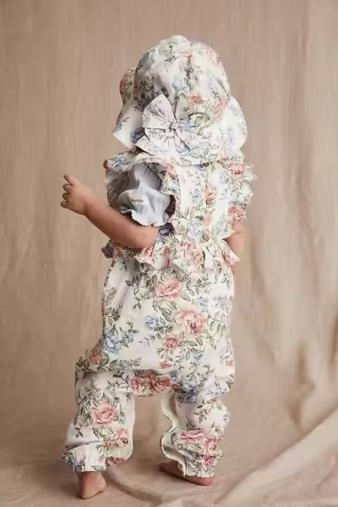 Guangzhou Manufacture Kids Girls Clothes Summer Baby Rompers With Print Pattern Linen Cotton One Piece Jumpsuit Latest Style