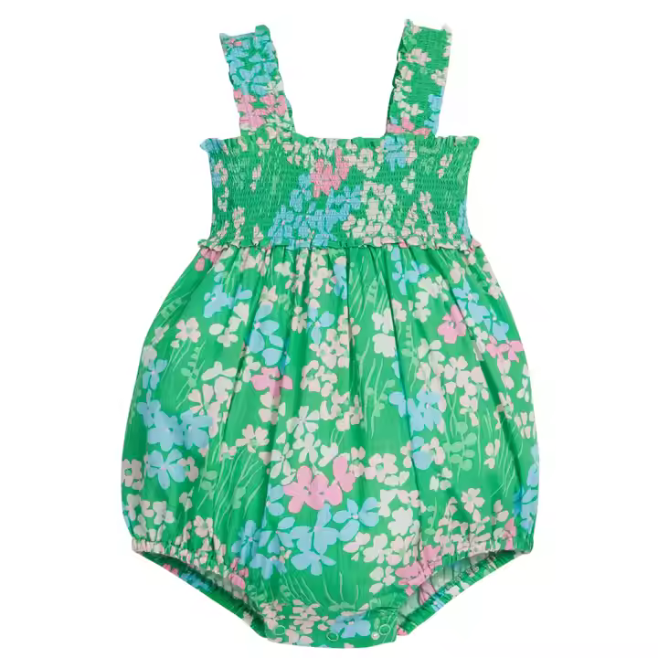 Custom High Quality 2025 Baby Girl Bamboo Romper with Digital Allover Print Ruffle Sleeves Summer Bubble Romper from Factory