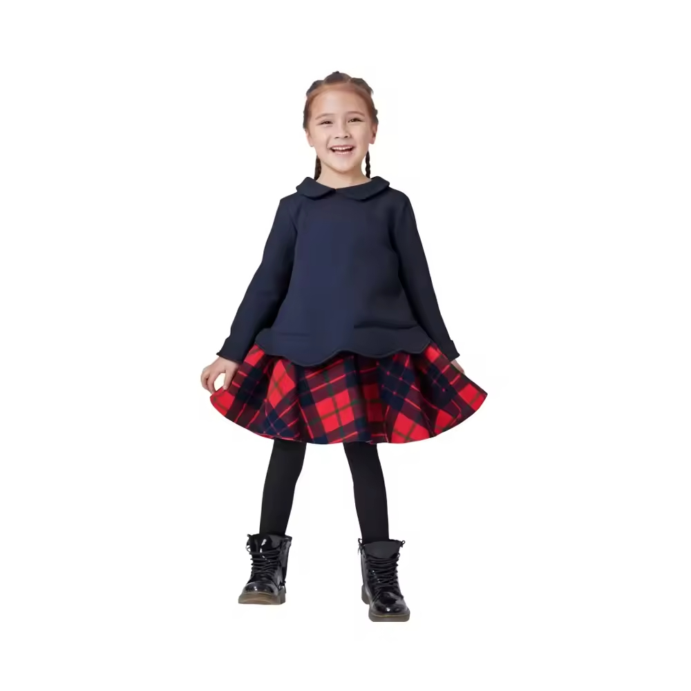 Winter knitted kids clothing A-line little girl printing dress with peter pan collar