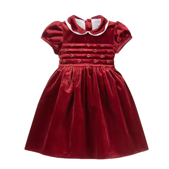 Children Girl Winter Dress Short Sleeve Velvet Fabric Casual Style Professional OEM/ODM Design