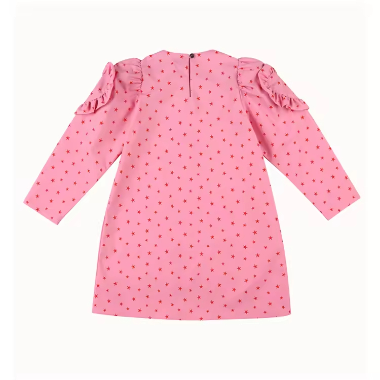 Guangzhou Manufacturer OEM Boutique Fashion Design Long Sleeve Kids Dress Stars Print Cotton Elegant Casual Dresses for Girls
