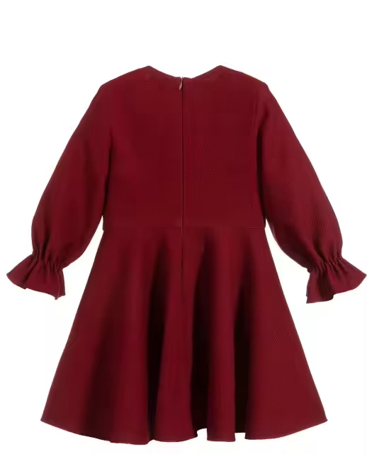 Fashion baby clothes red puff sleeves girl dress with bow baby girls princess party dress