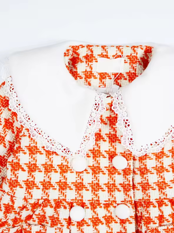 New Bestseller 2025 Custom Girls' Woolen Winter Coats Long Baby-Friendly Outerwear Little Girl's Orange Checkered Coat