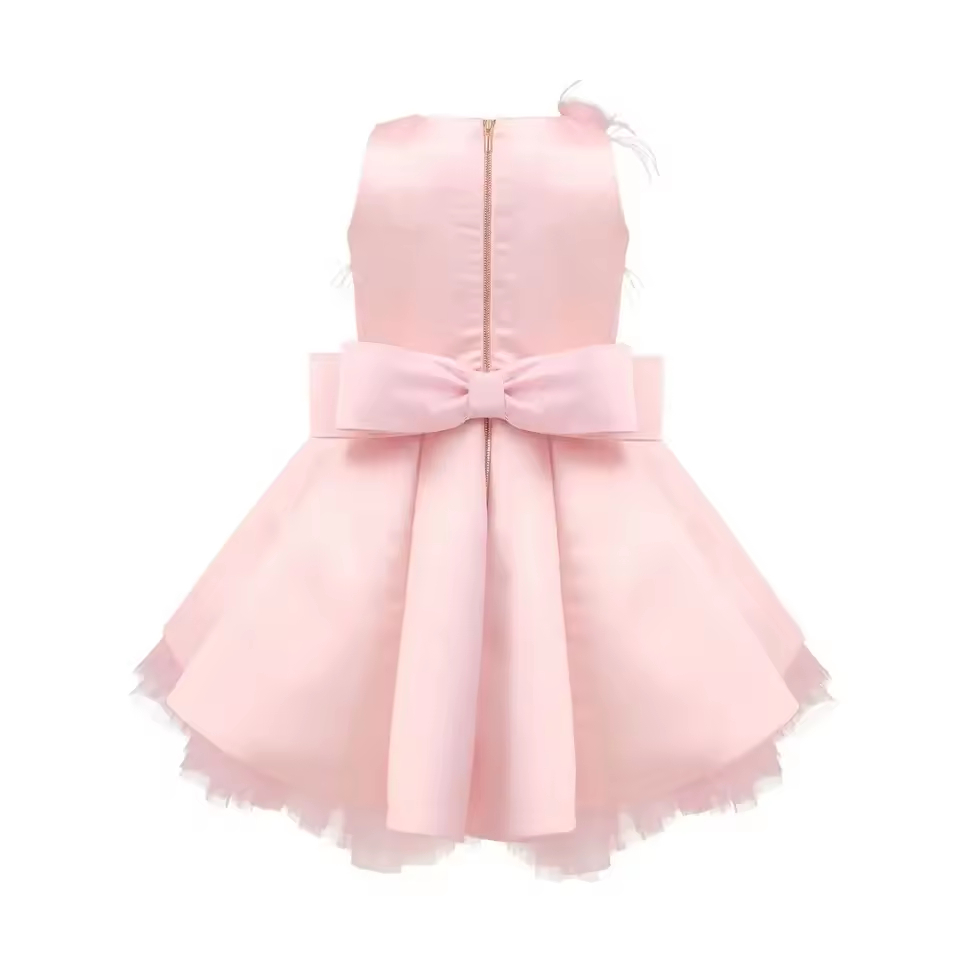 Pink Satin Baby Girls Kids Graduation Gown Dresses With Flower Bow for Wedding Party Children Princess Dress Luxury Clothes