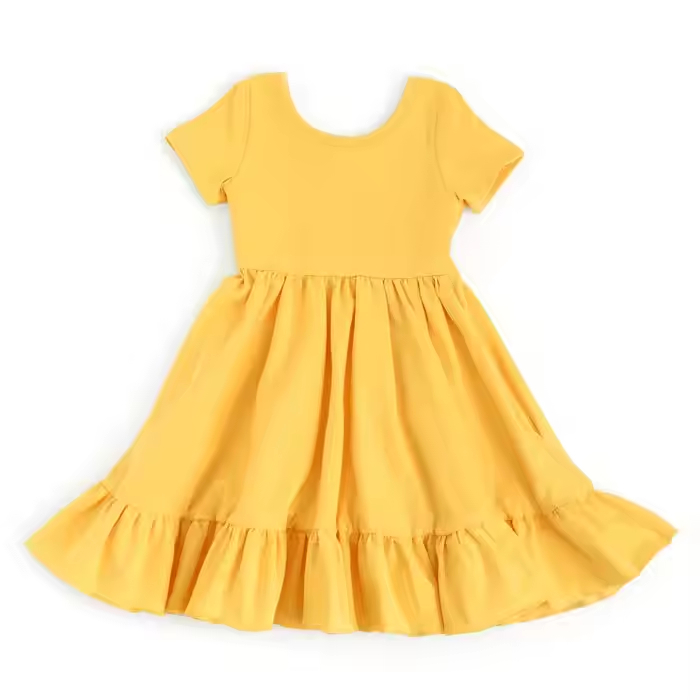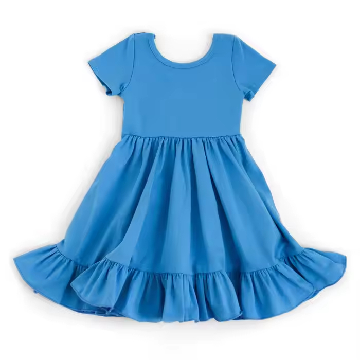 Custom Bamboo or Cotton Spandex Twirl Dress Kids Girls Dresses 2-12 Children Clothing Basic Style Baby Girl Dress Supplier