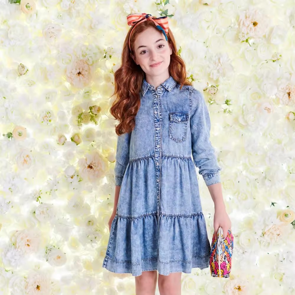 Customized Different Style Acid Wash Summer or Autumn Denim Kids Dresses for Girls Brand Knee Length Kids Denim Dress Supplier