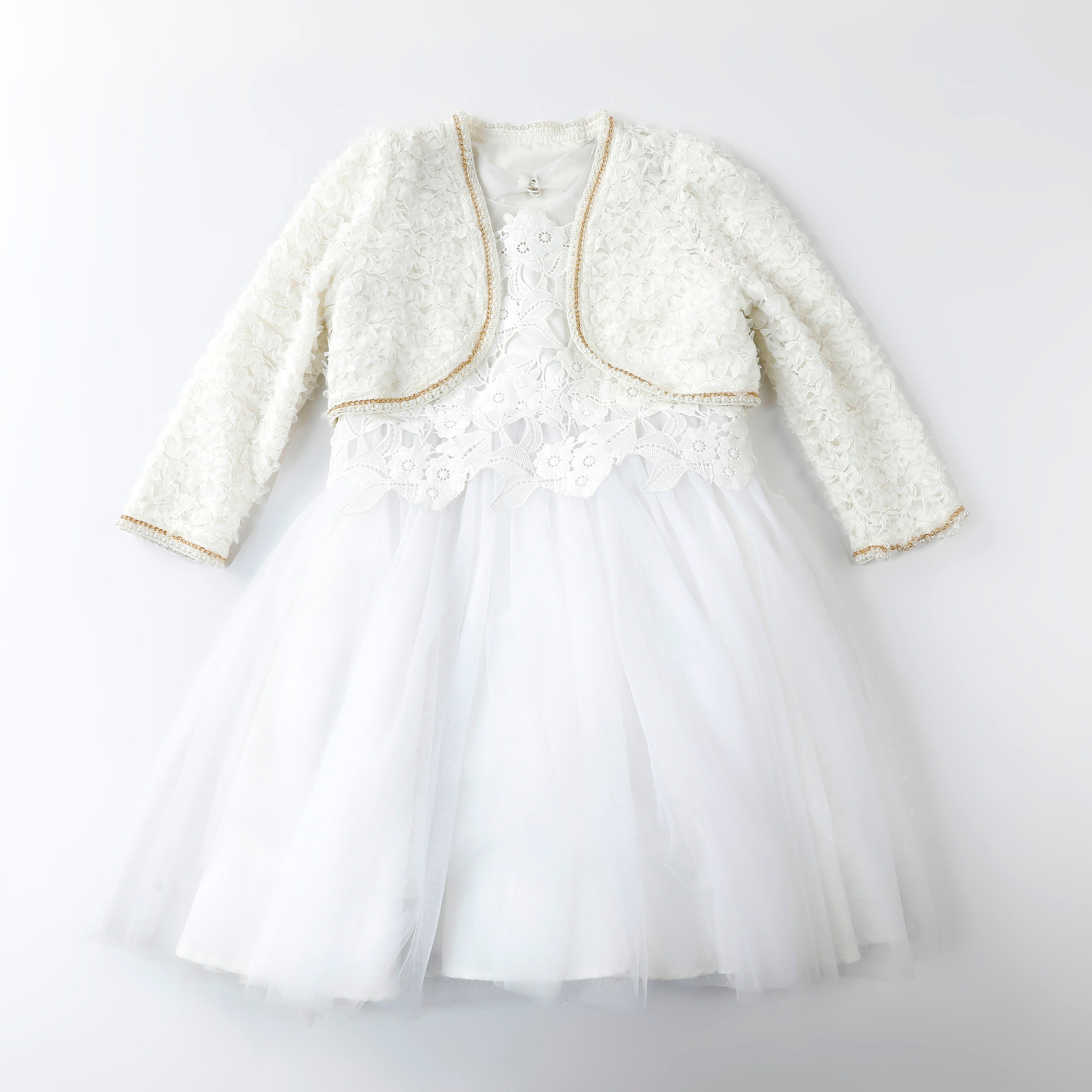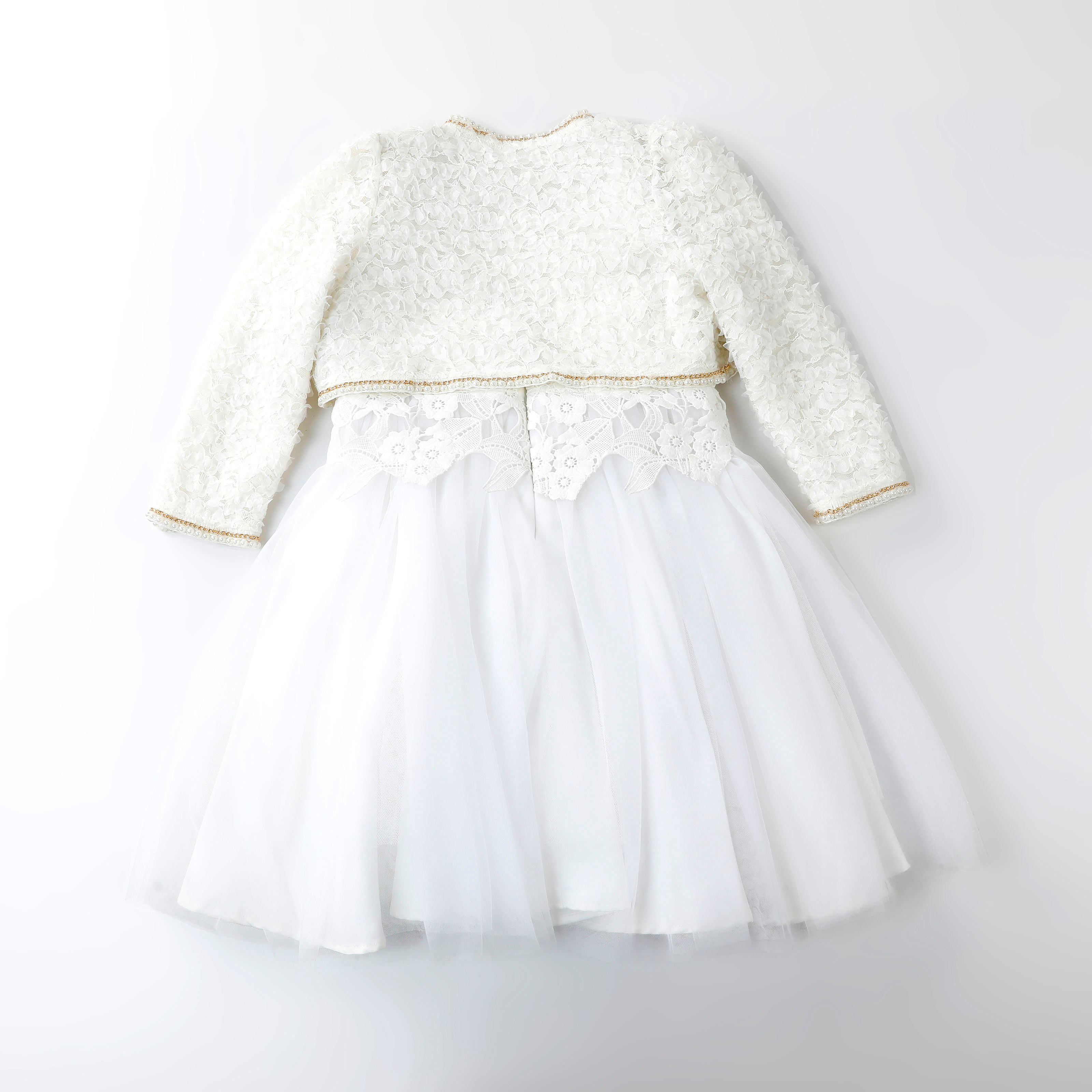 Good Quality Elegant Summer Long Sleeves Embroidery Baby Girls Party Dress With Waistcoat