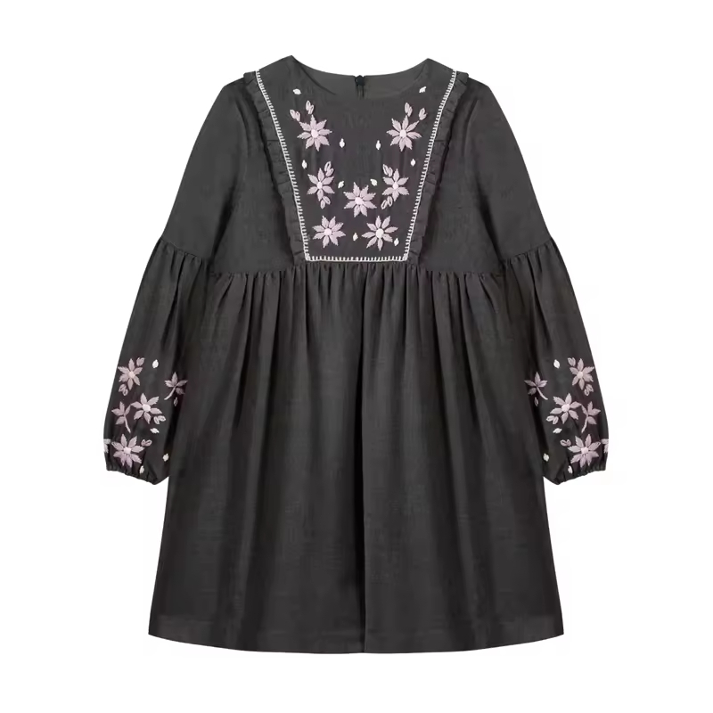 OEM Latest Fashion 2025 AW Children Collection Embroidery Kids Dresses for Girls of 10-11 Years