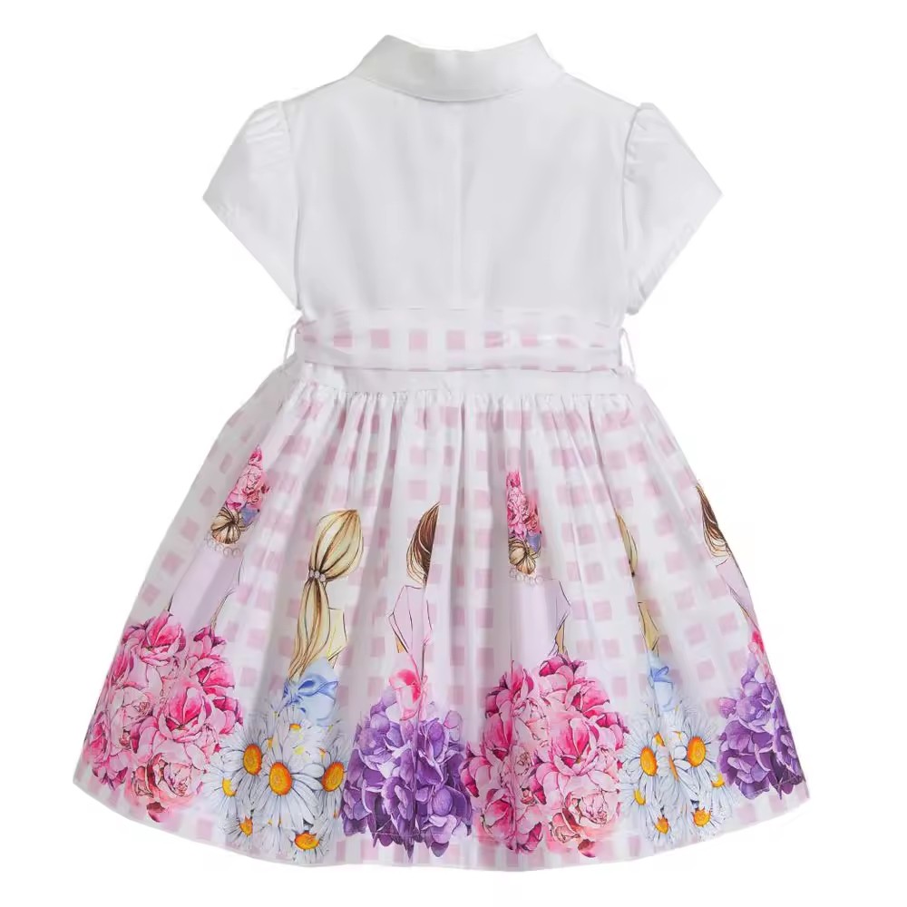1.Girls Dress in White/black color, quality cotton fabric and a vintage style.