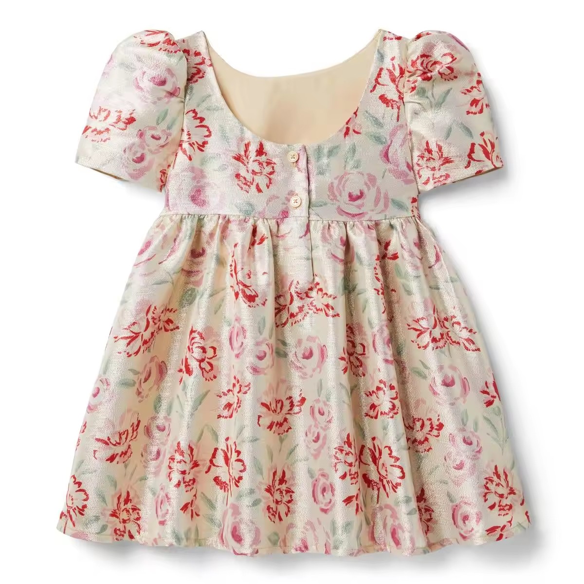 Custom Rose Floral Print Kids Cotton Dress Wear With Puffy Sleeve Spring Casual Style Toddler Dresses