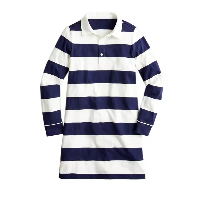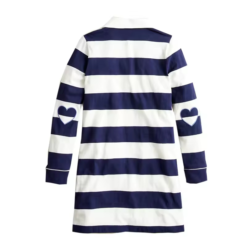 Customized Denim Women Rugby Dress with Polo Collar Halter Design for Mom Me Cotton Spandex Stripes ODM for Autumn Season Kids