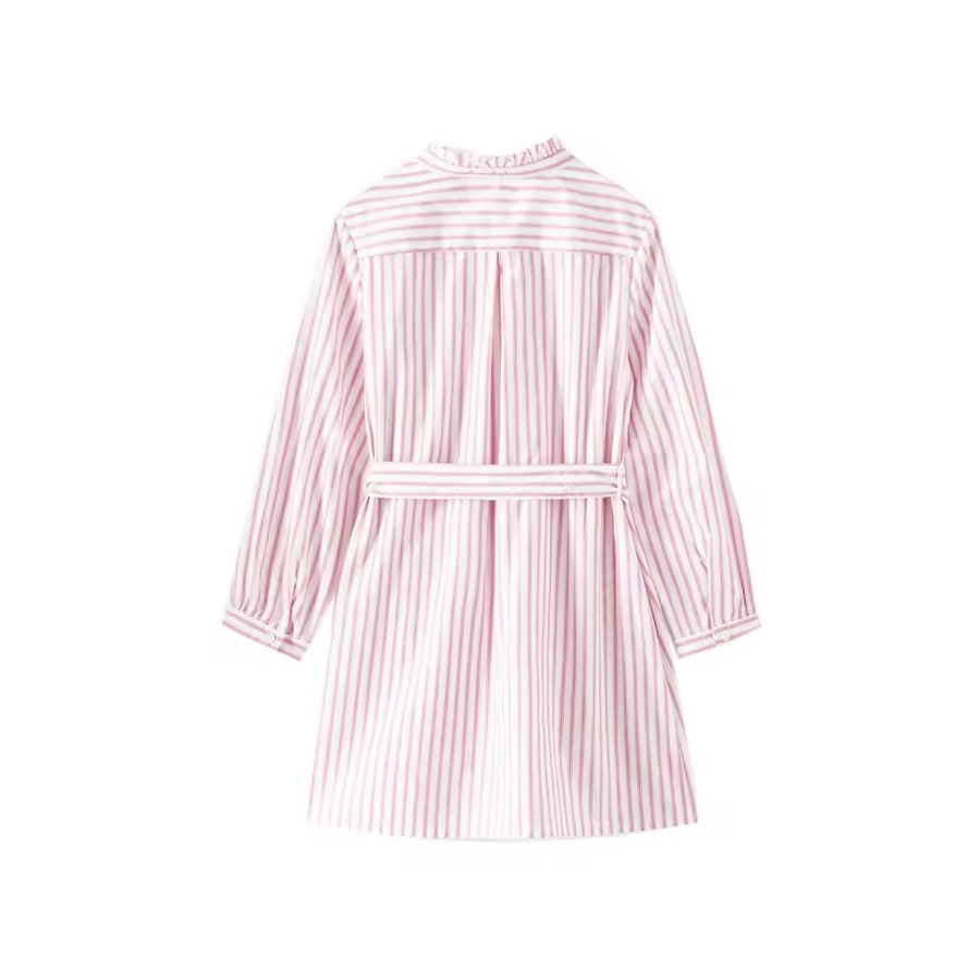 Customization Summer Style Cotton Shirt Dress for Kids Girls with O-Neck and Striped Pattern Long Sleeves and Belt