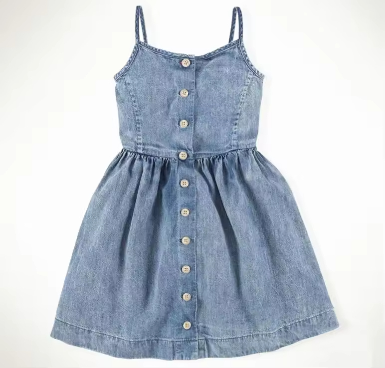 Fashionable Cotton Denim Sling Dresses for Kids 14 -18 Years Summer style