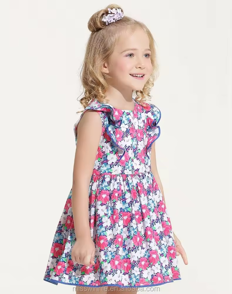 2025 Newest Baby Frock Beautiful Designs Fancy Romantic Printing Kids Cotton Frocks