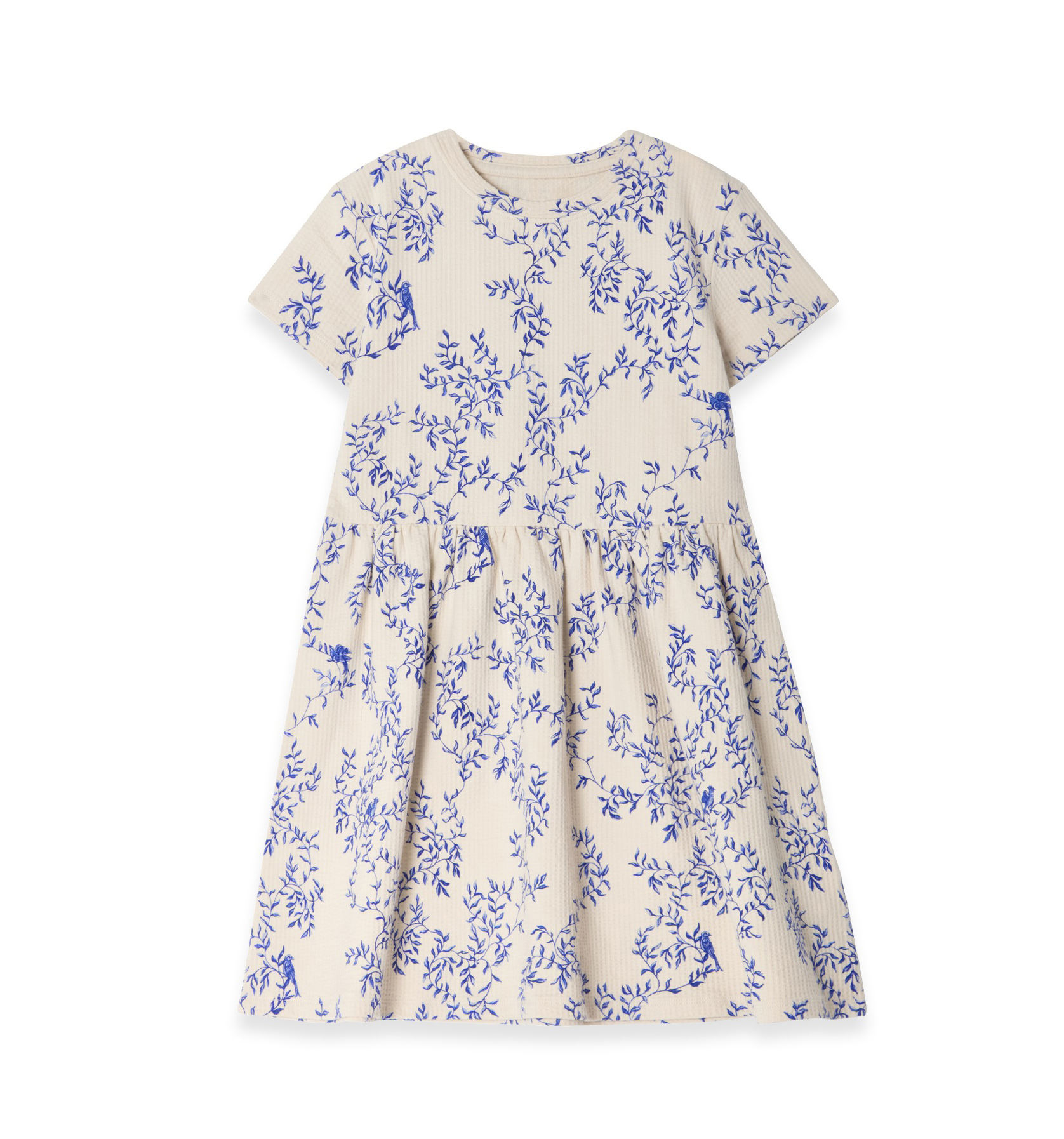 Casual Style Floral Print Short Sleeve Dress for Girls Kids Cotton Knee-Length Summer Dress ODM Supply